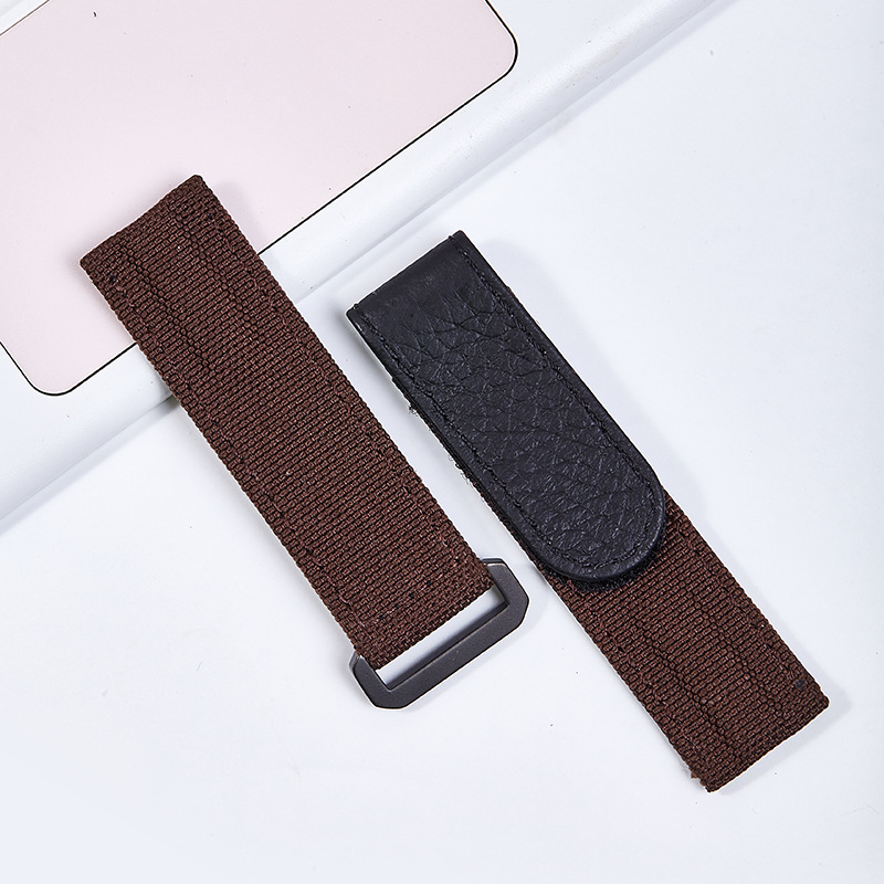 Crafted with a canvas-leather combination: its main body uses high-density nylon canvas (boasting a distinct texture) that’s durable enough for daily commuting and breathable for comfortable summer wear. The middle section is accented with black pebbled leather, which elevates the strap’s texture while making the wrist-contact area softer and skin-friendly.